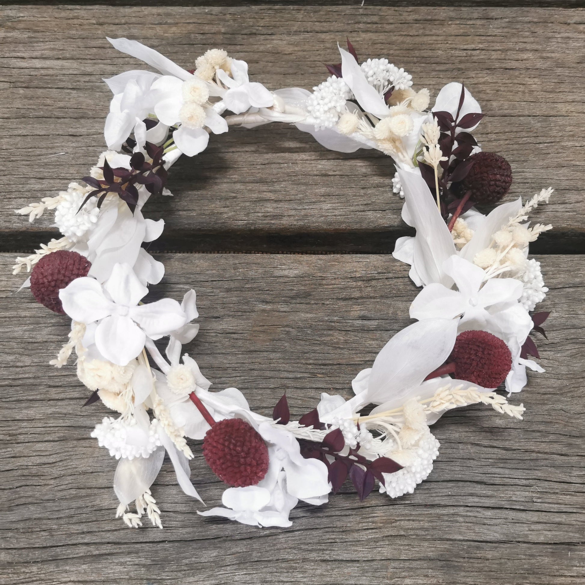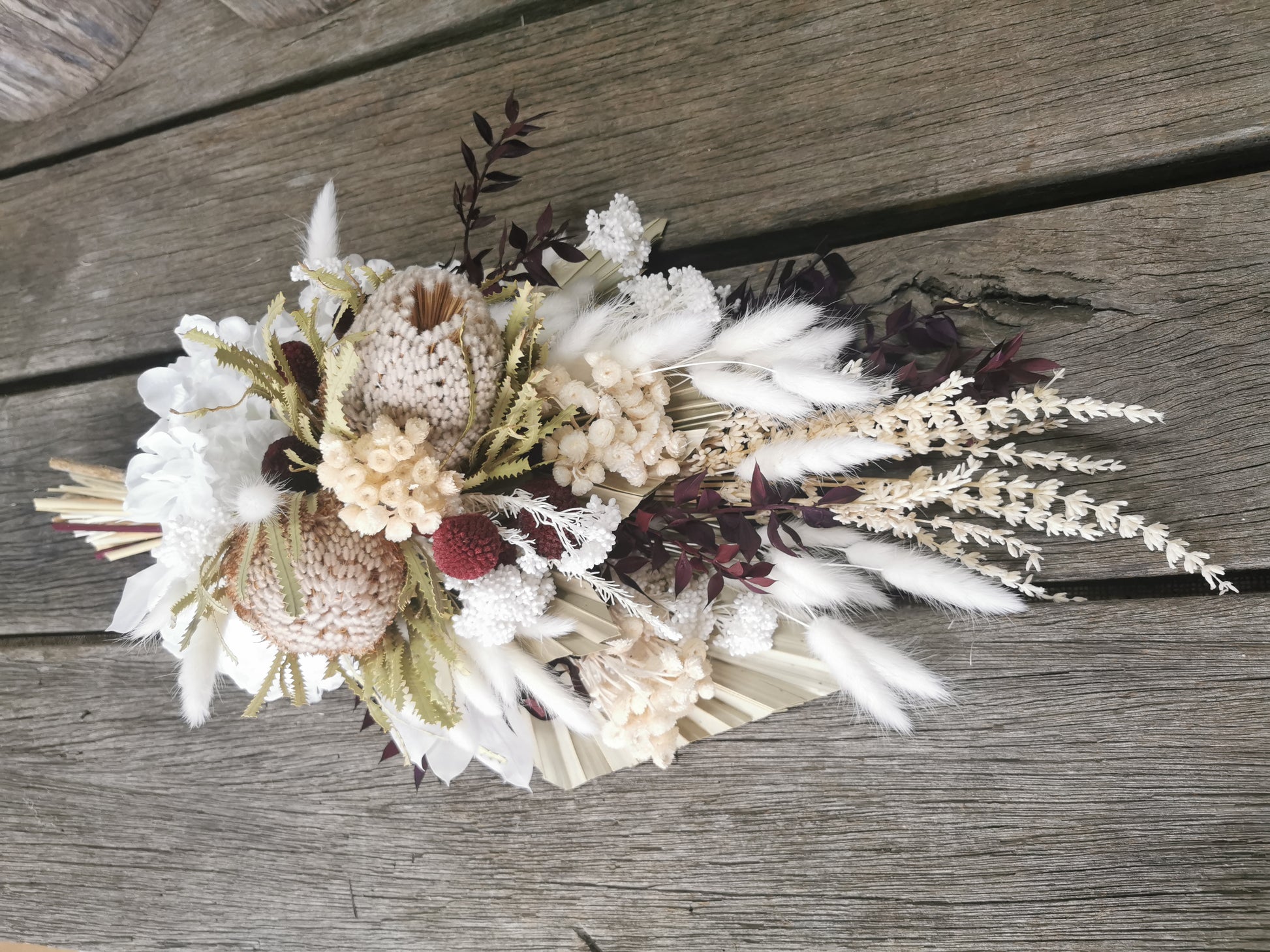Dried Flower Bridal Bouquet -White, Cream and a touch of Burgundy